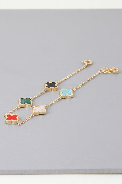 Design: Adorned with clover charms and vibrant stones, this bracelet brings a fresh and colorful touch to your jewelry collection.