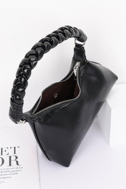 Complete your look with the Faux Leather Braided Strap Shoulder Bag. Add it to your cart now and experience the perfect blend of elegance and style!