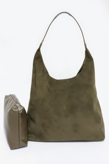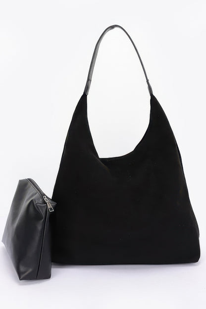 Add the Faux Suede Bindle Bag with Pouch to your collection today and elevate your accessory game with this sophisticated, practical duo.