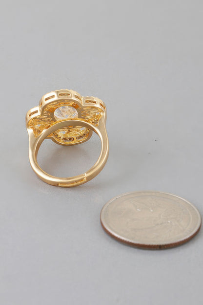 Fabric: Made from high-quality metal with a luxurious Gold finish, the ring is set with clear rhinestones that enhance its radiant shine.